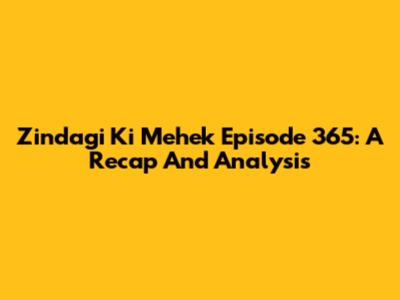 Zindagi Ki Mehek Episode 365: A Recap And Analysis