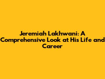 Jeremiah Lakhwani: A Comprehensive Look At His Life And Career