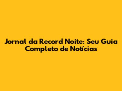 O Jornal da Record Noite oferece uma cobertura completa das notícias, com foco em informação, credibilidade e imparcialidade. O jornal traz as principais notícias do Brasil e do mundo, com reportagens investigativas, entrevistas e análises aprofundadas. A equipe de jornalistas da Record trabalha para trazer as informações de forma clara e objetiva, garantindo que o público esteja bem informado. O jornal aborda temas relevantes, como política, economia, esportes, cultura e saúde.