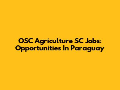 OSC Agriculture SC Jobs: Opportunities In Paraguay