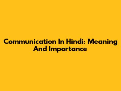 Communication In Hindi: Meaning And Importance