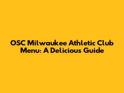 OSC Milwaukee Athletic Club Menu: A Delicious Guide