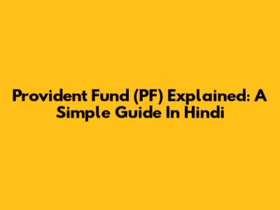 Provident Fund (PF) Explained: A Simple Guide In Hindi