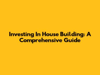Investing In House Building: A Comprehensive Guide