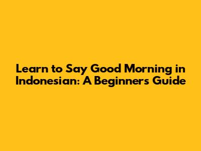 Learn To Say Good Morning In Indonesian