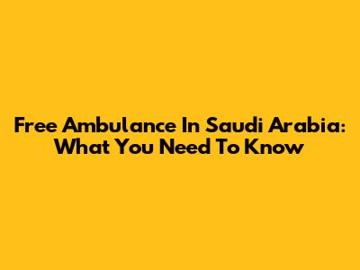 Free Ambulance In Saudi Arabia: What You Need To Know