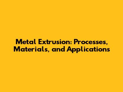 Metal Extrusion: Processes, Materials, And Applications