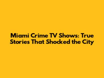 Miami Crime TV Shows: True Stories That Shocked The City