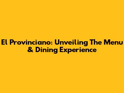 El Provinciano: Unveiling The Menu & Dining Experience