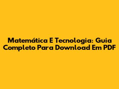 Matemática E Tecnologia: Guia Completo Para Download Em PDF