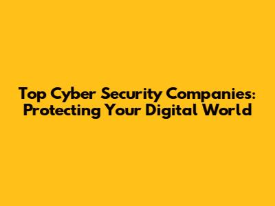 Top Cyber Security Companies: Protecting Your Digital World