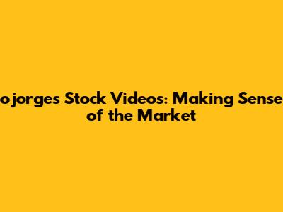 Ojorge's Stock Videos: Making Sense Of The Market
