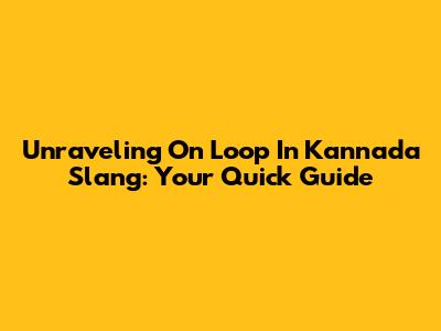 Unraveling 'On Loop' In Kannada Slang: Your Quick Guide