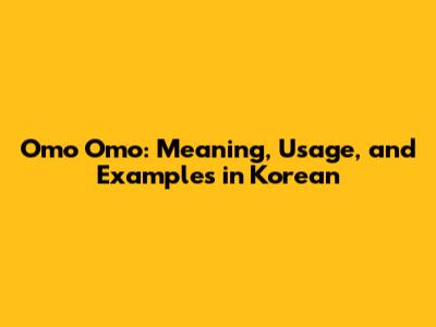 Omo Omo: Meaning, Usage, And Examples In Korean