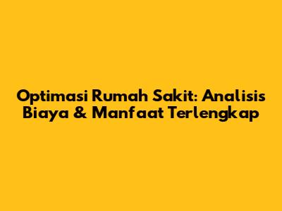 Optimasi Rumah Sakit: Analisis Biaya & Manfaat Terlengkap