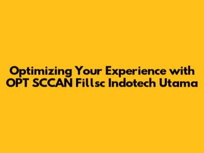 Optimizing Your Experience With OPT SCCAN Fillsc Indotech Utama