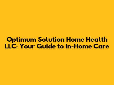Optimum Solution Home Health LLC: Your Guide To In-Home Care