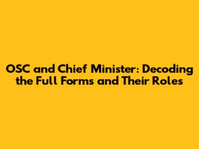 OSC And Chief Minister: Decoding The Full Forms And Their Roles