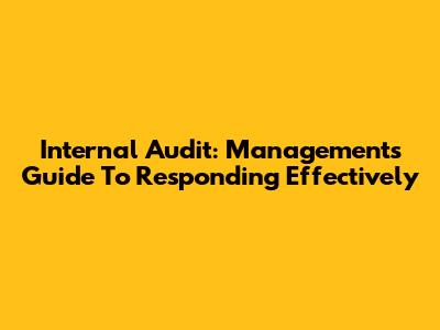 Internal Audit: Management's Guide To Responding Effectively