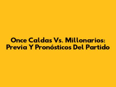 Once Caldas Vs. Millonarios: Previa Y Pronósticos Del Partido