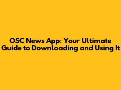 OSC News App: Download, Features, And How-To Guide