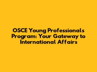 OSCE Young Professionals Program: Your Gateway To International Affairs