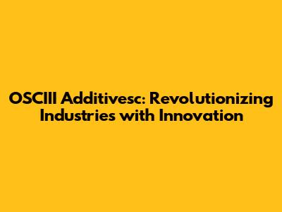 OSCIII Additivesc: Revolutionizing Industries With Innovation