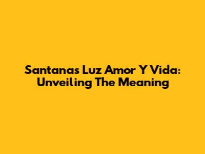 Santana's Luz Amor Y Vida: Unveiling The Meaning