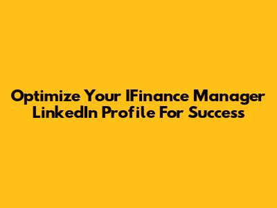 Optimize Your IFinance Manager LinkedIn Profile For Success