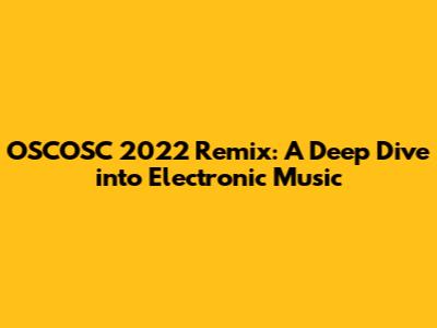 OSCOSC 2022 Remix: A Deep Dive Into Electronic Music