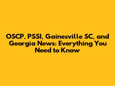 OSCP And PSSI News: Updates From Gainesville, SC, And Georgia