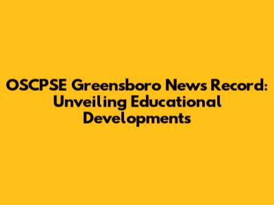 OSCPSE News: Greensboro's Education Scene Unveiled