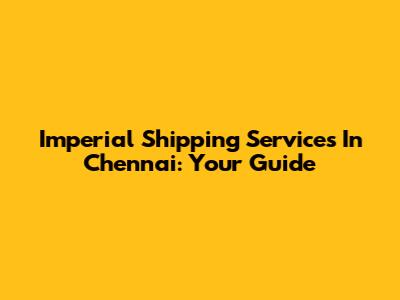 Imperial Shipping Services In Chennai: Your Guide