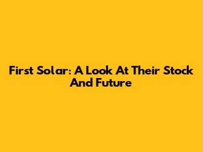 First Solar: A Look At Their Stock And Future