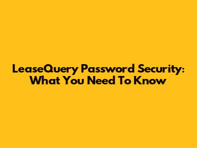 LeaseQuery Password Security: What You Need To Know