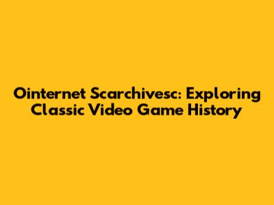Ointernet Scarchivesc: Exploring Classic Video Game History