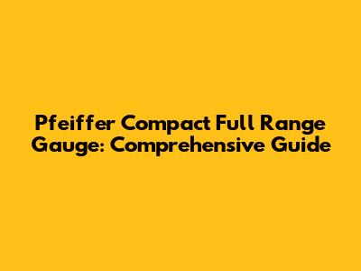 Pfeiffer Compact Full Range Gauge: Comprehensive Guide