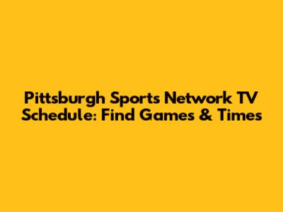 Pittsburgh Sports Network TV Schedule: Find Games & Times