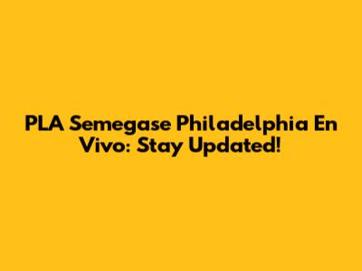 PLA Semegase Philadelphia: Live Updates & Info