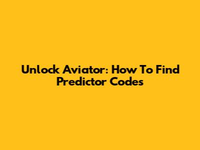 Unlock Aviator: How To Find Predictor Codes