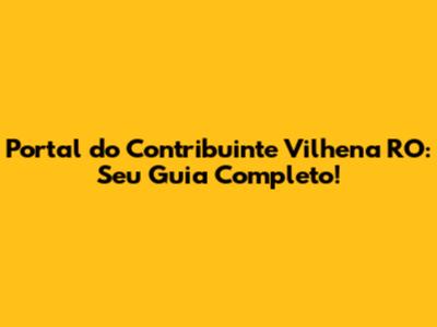 Portal do Contribuinte Vilhena RO: Seu Guia Completo!