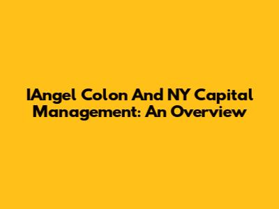 IAngel Colon And NY Capital Management: An Overview