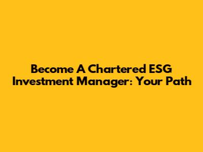 Become A Chartered ESG Investment Manager: Your Path