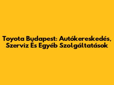 Toyota Budapest: Autókereskedés, Szerviz És Egyéb Szolgáltatások