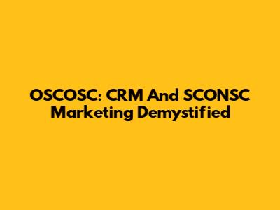 OSCOSC: CRM And SCONSC Marketing Demystified