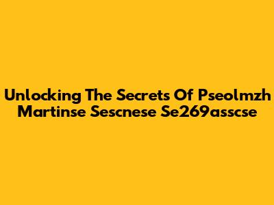 Unlocking The Secrets Of Pseolmzh Martinse Sescnese Se269asscse