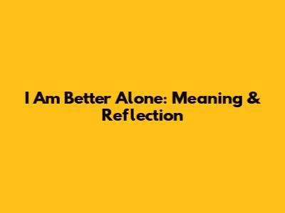 I Am Better Alone: Meaning & Reflection