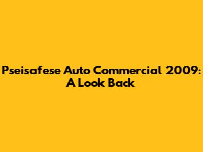 Pseisafese Auto Commercial 2009: A Look Back