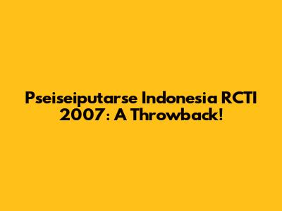 Hey guys! Let's dive into a nostalgic trip back to 2007, shall we? Specifically, we're talking about "Pseiseiputarse Indonesia" which aired on RCTI. Now, I know what you might be thinking: "What exactly is Pseiseiputarse?" Well, the truth is, information about a show with that exact title is pretty scarce. It might have been a segment within a larger program, a special event, or even a colloquial name given by viewers to a particular show or occurrence on RCTI during that time. Regardless, the year 2007 was a vibrant time for Indonesian television, and RCTI was a major player, offering a diverse range of shows that captured the hearts of the nation.