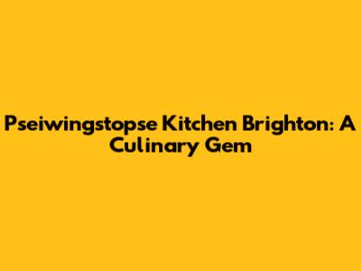 Pseiwingstopse Kitchen Brighton: A Culinary Gem